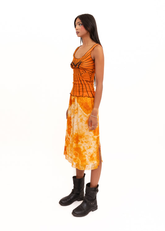 Upcycled vintage slip skirt- orange