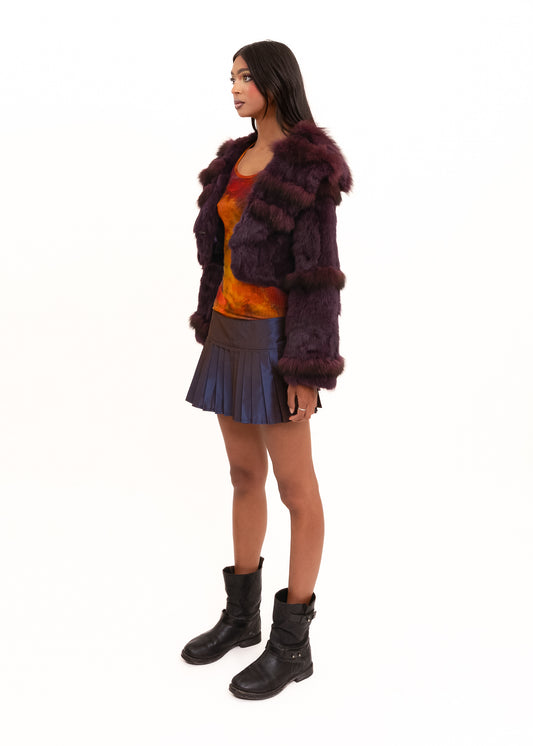 Purple cropped fur jacket