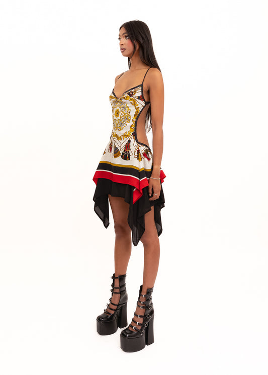Odyssey Silk Scarf Dress- cream/ red