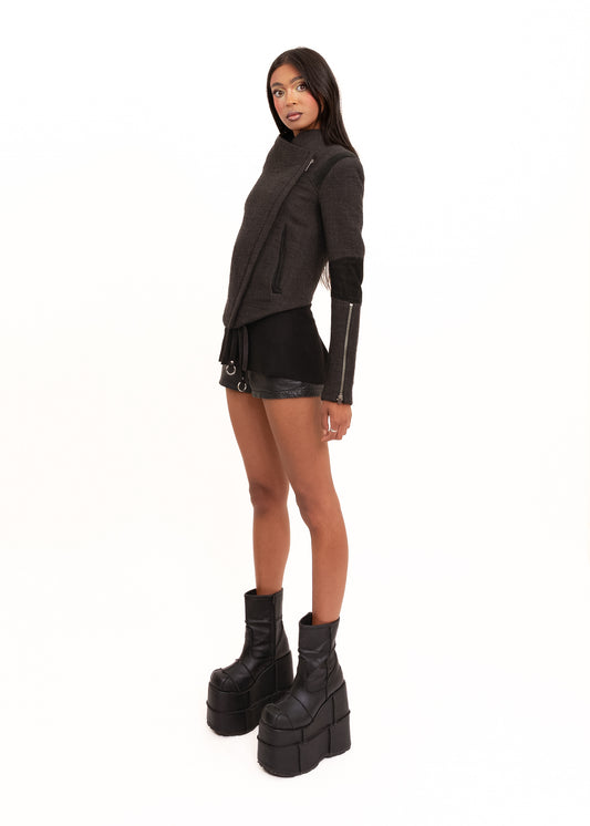 Asymmetric wool moto jacket