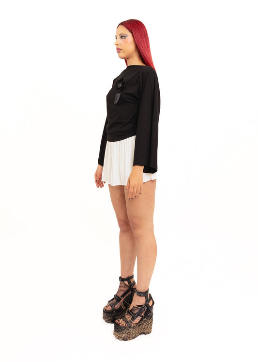 Rosette Long Sleeve Top- Black