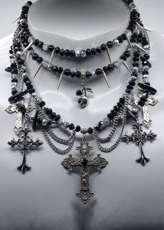Multi strand beaded crucifix necklace