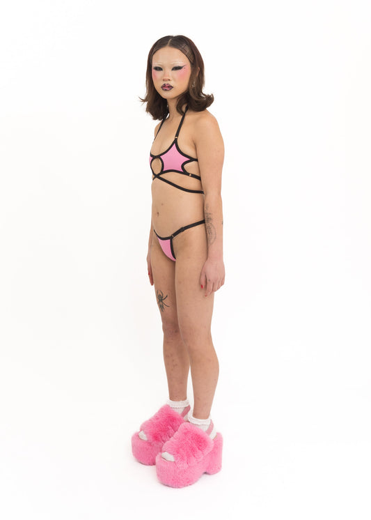 Mash Up Triangle Bikini Top- Spiderweb/ Stripe