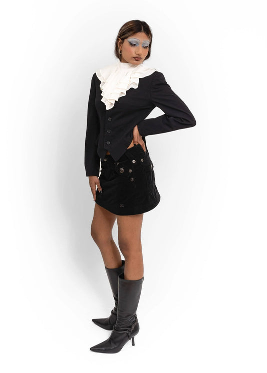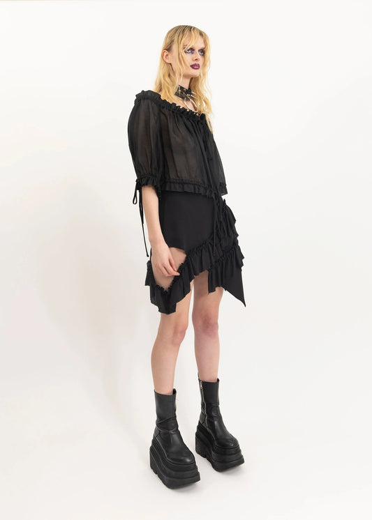 Mini Fray Skirt- Black denim/ tulle