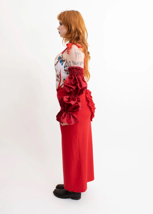 Sold outSimone Ruffle Heart Midi Skirt- red