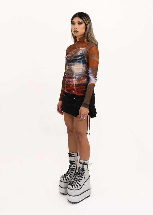 1999 Mirror Ball print silk mesh top *BB exclusive recut*