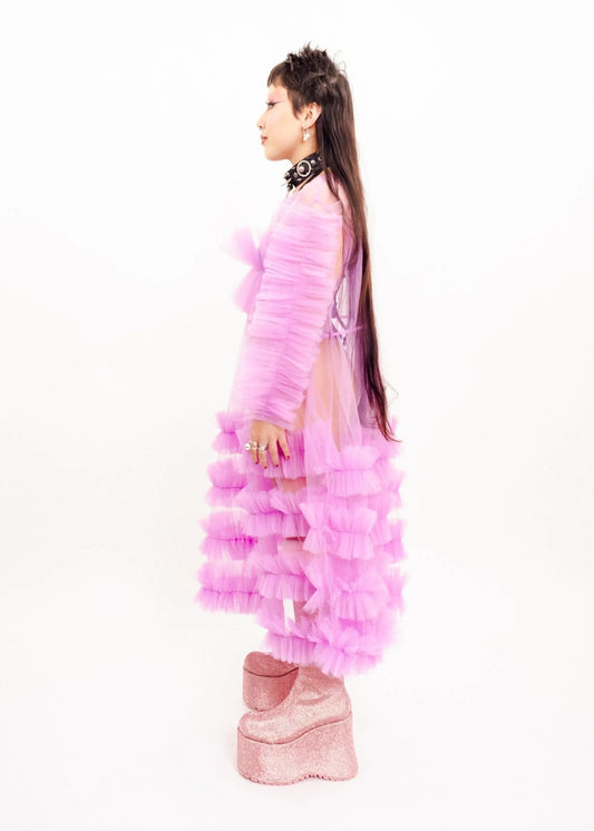 Tulle Ruffled Midi Dress- Sugarplum Purple