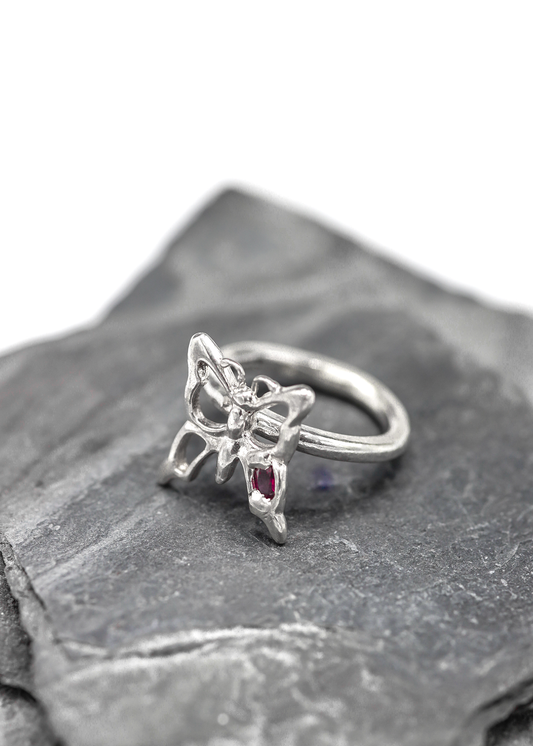 Butterfly ring- red lab grown ruby