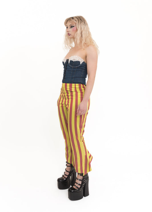 Sold outStriped silk dupion ruffle hem pants