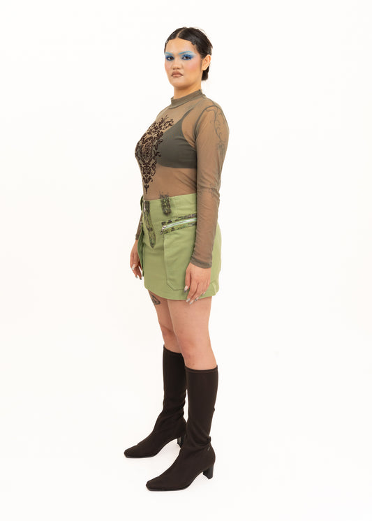 Leather trim mini skirt