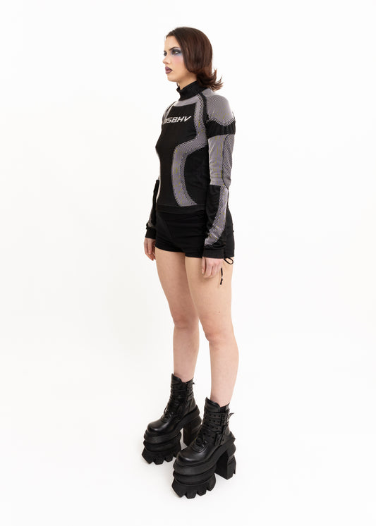 Jungle print mesh top with ribbed cuffs