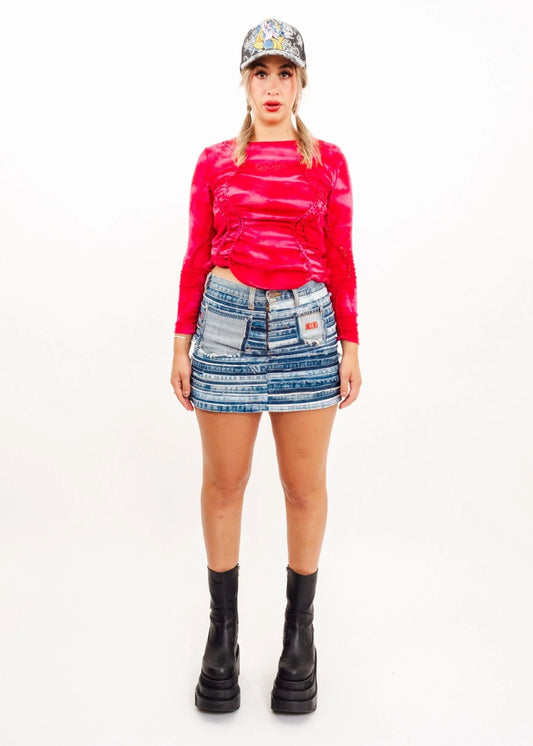 Fae braided long sleeve top- hot pink/ red