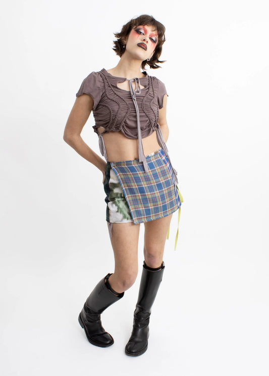 Fae keyhole braided short sleeve top- Mushroom