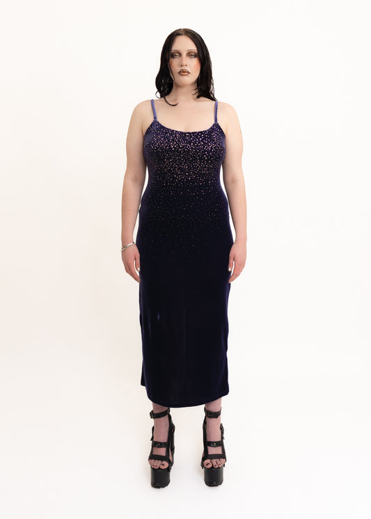 Velvet evening dress with glitter dot detail