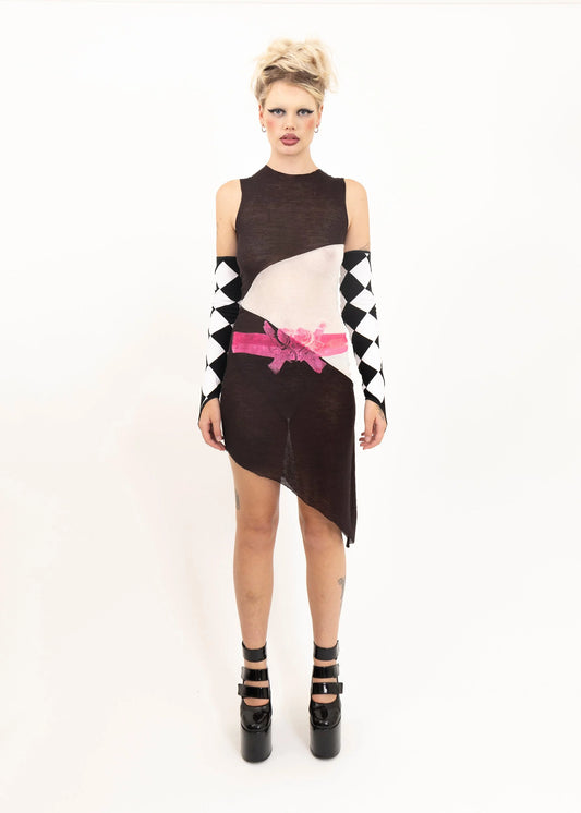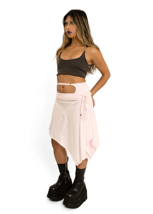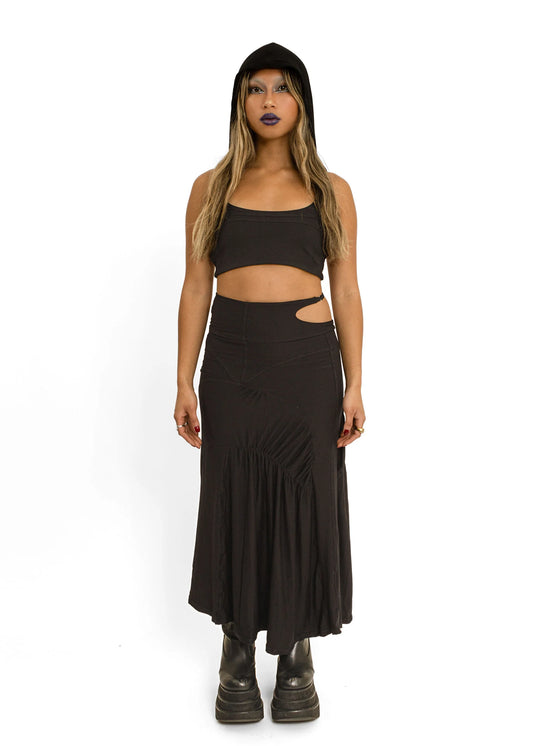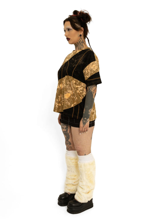 Slashed Fae Asymmetric Braided Tee- tea stain