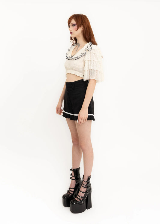Frill hem linen shorts