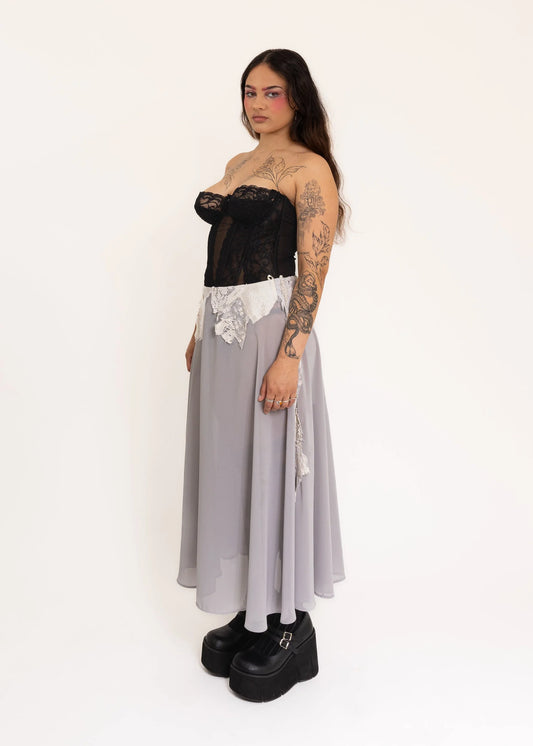 Silk skirt with lace appliqué