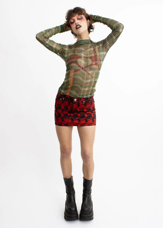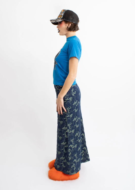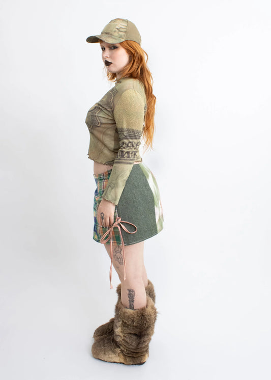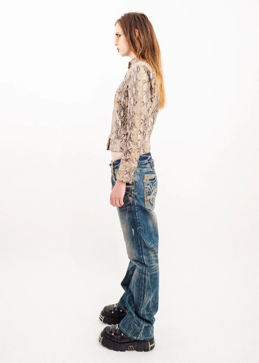 Patchwork reconstructed cowboy print long sleeve t-shirt