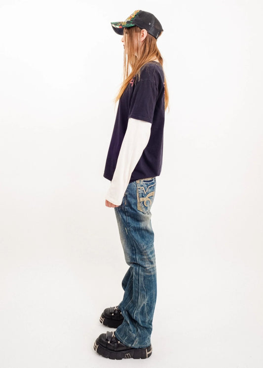 Engineered jeans with snakeskin accents