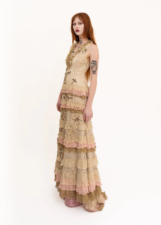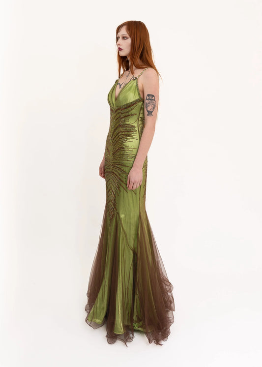 Beaded gown with train