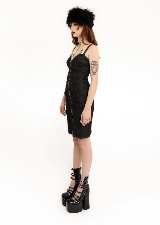 Zip front denim bustier dress