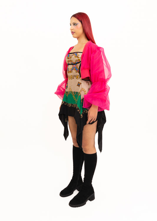 Velvet flocked tulle skirt and blouse co-ordinating set