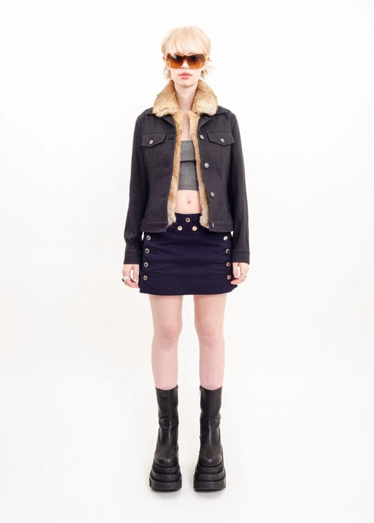 Sold outCropped denim jacket with fur collar