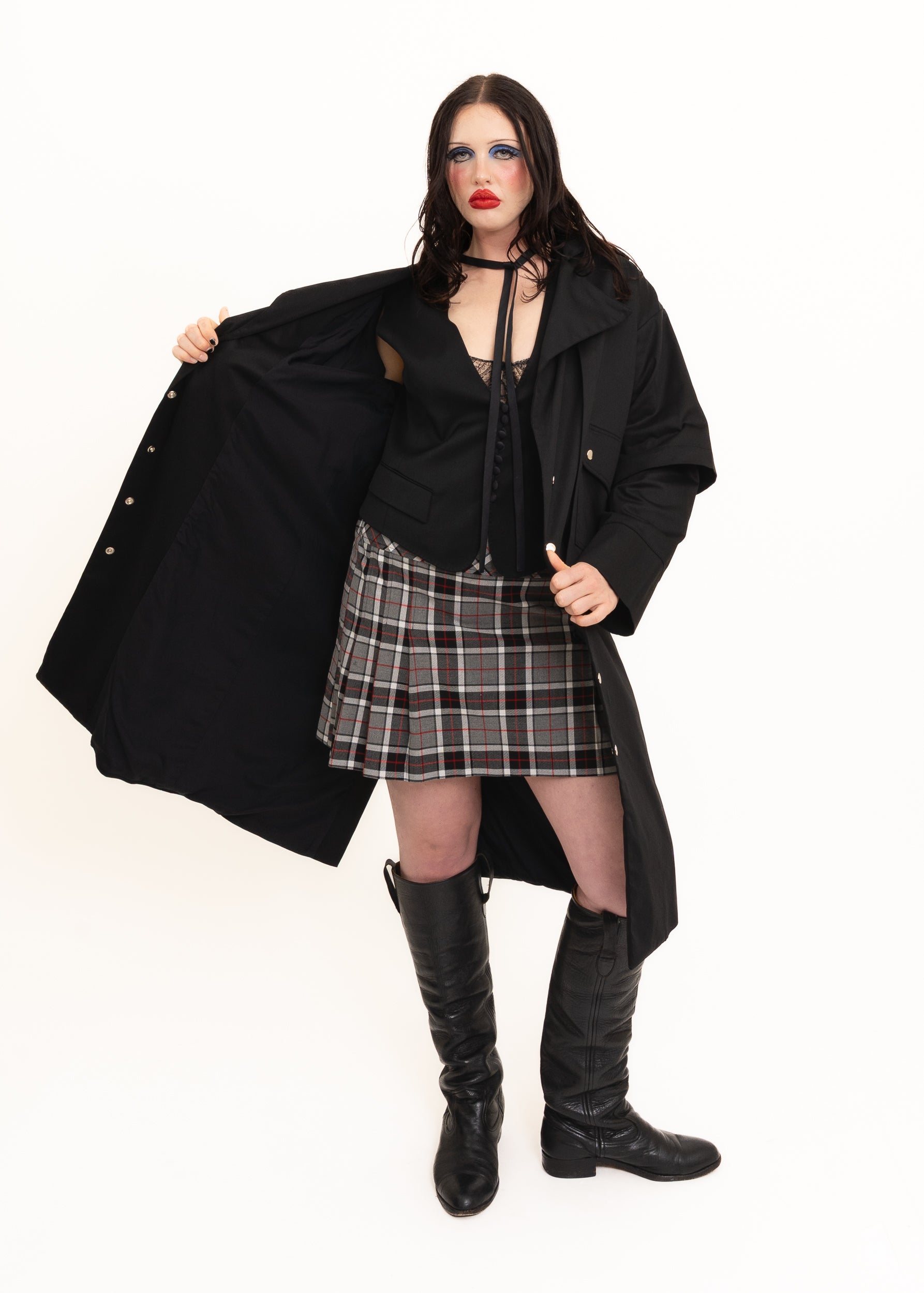 Styled with the Hugo Boss bustier vest and pleated tartan mini skirt