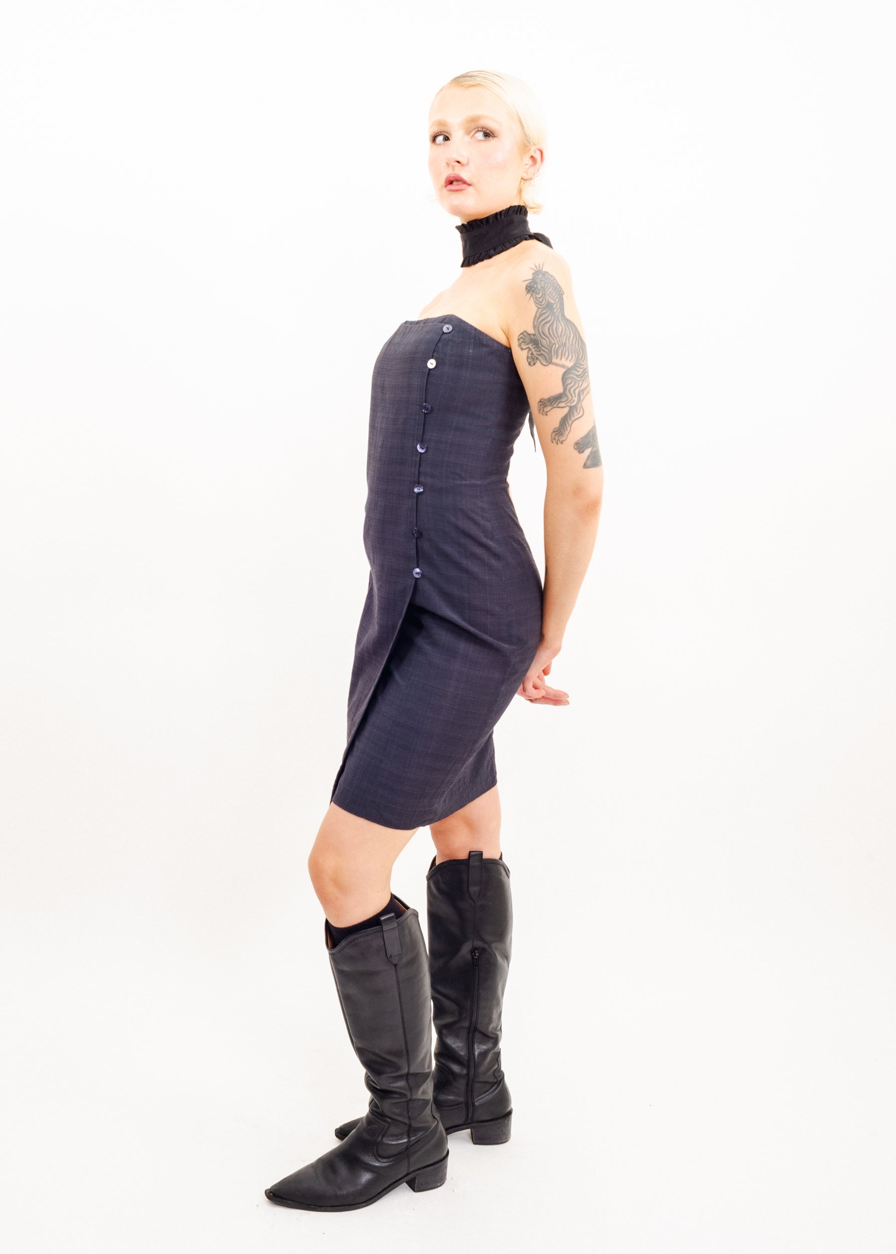 Structured Kenzo dress with boning. and side button detail