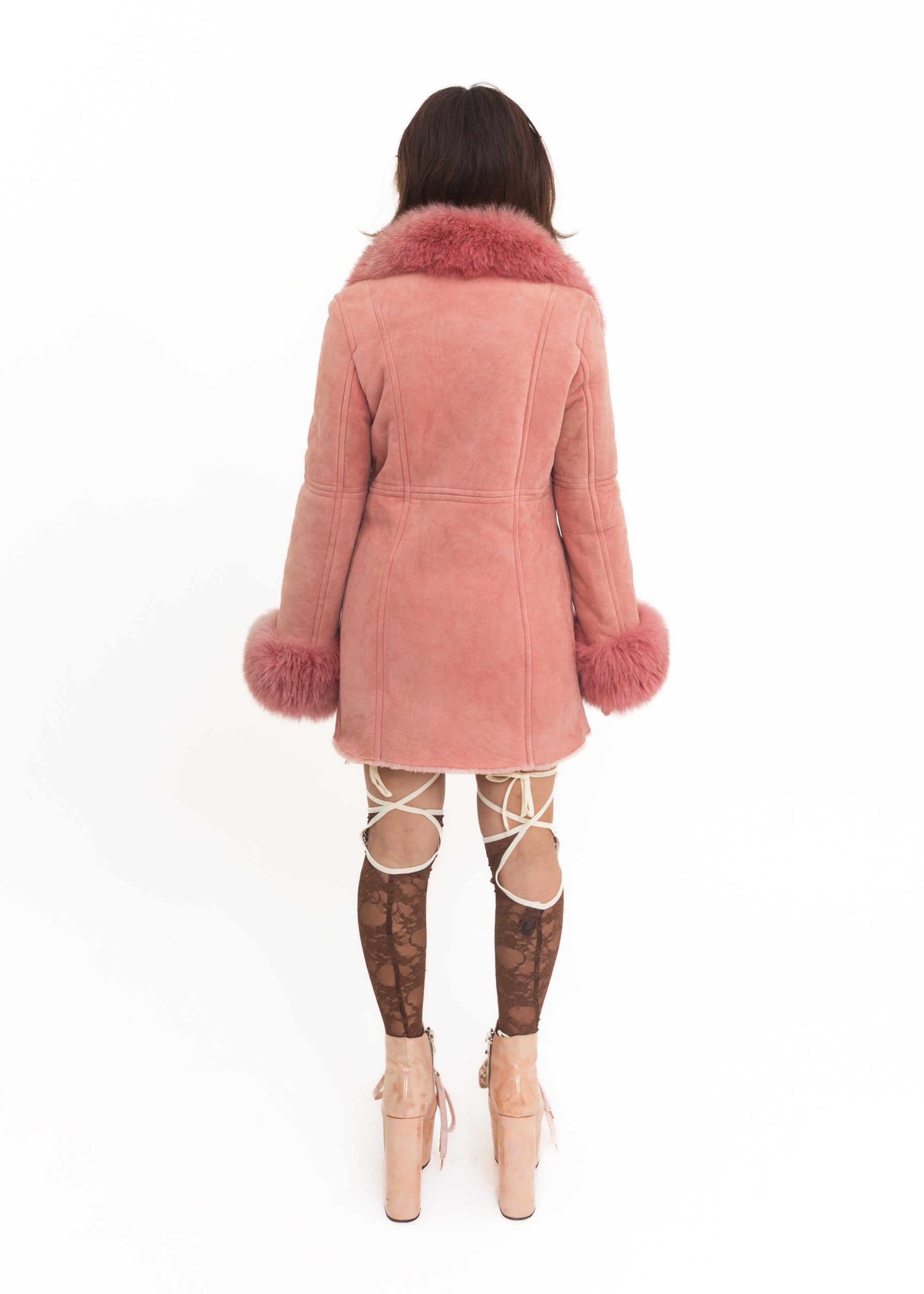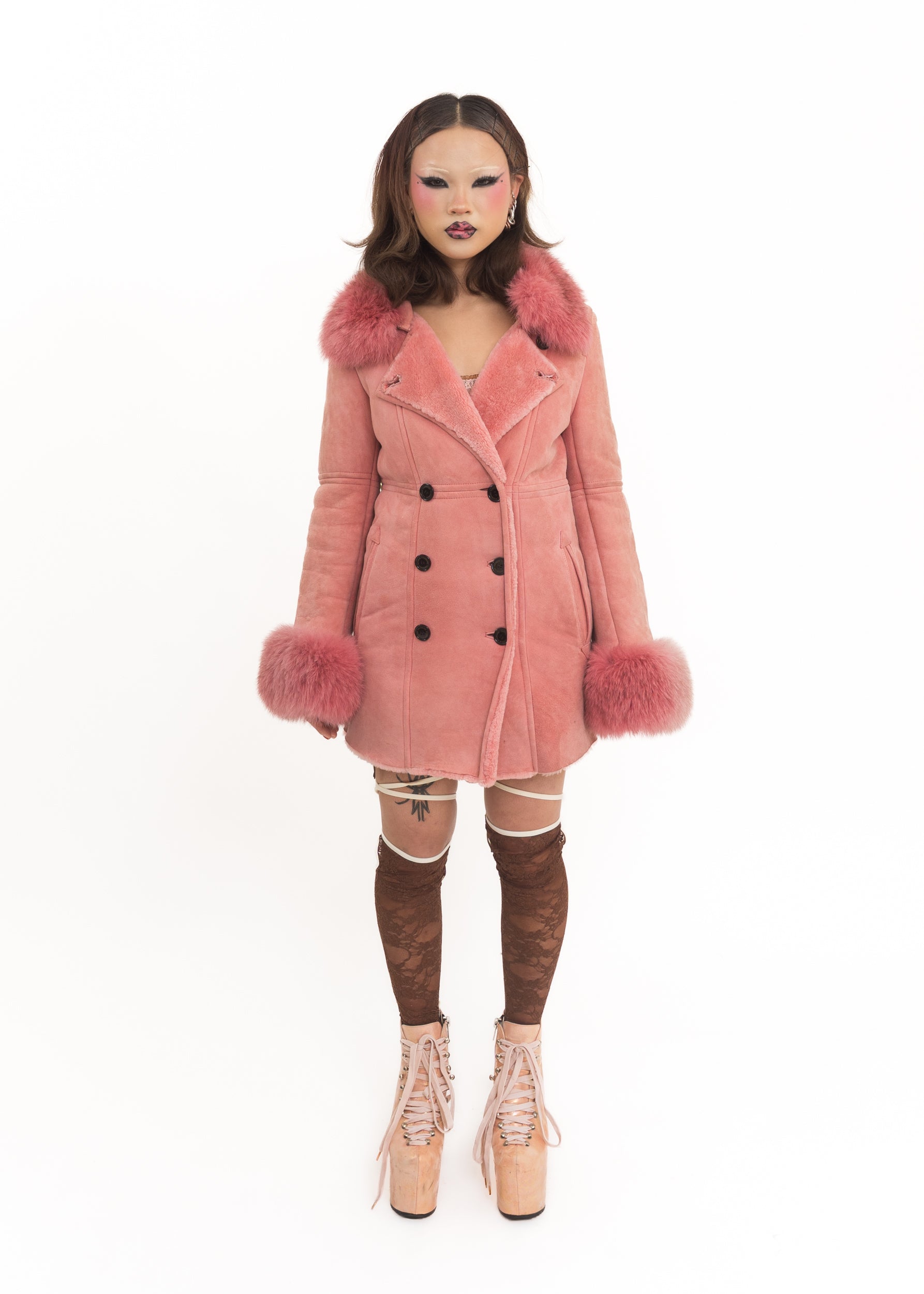 Japanese label Sov suede coat with fox fur collar and cuffs