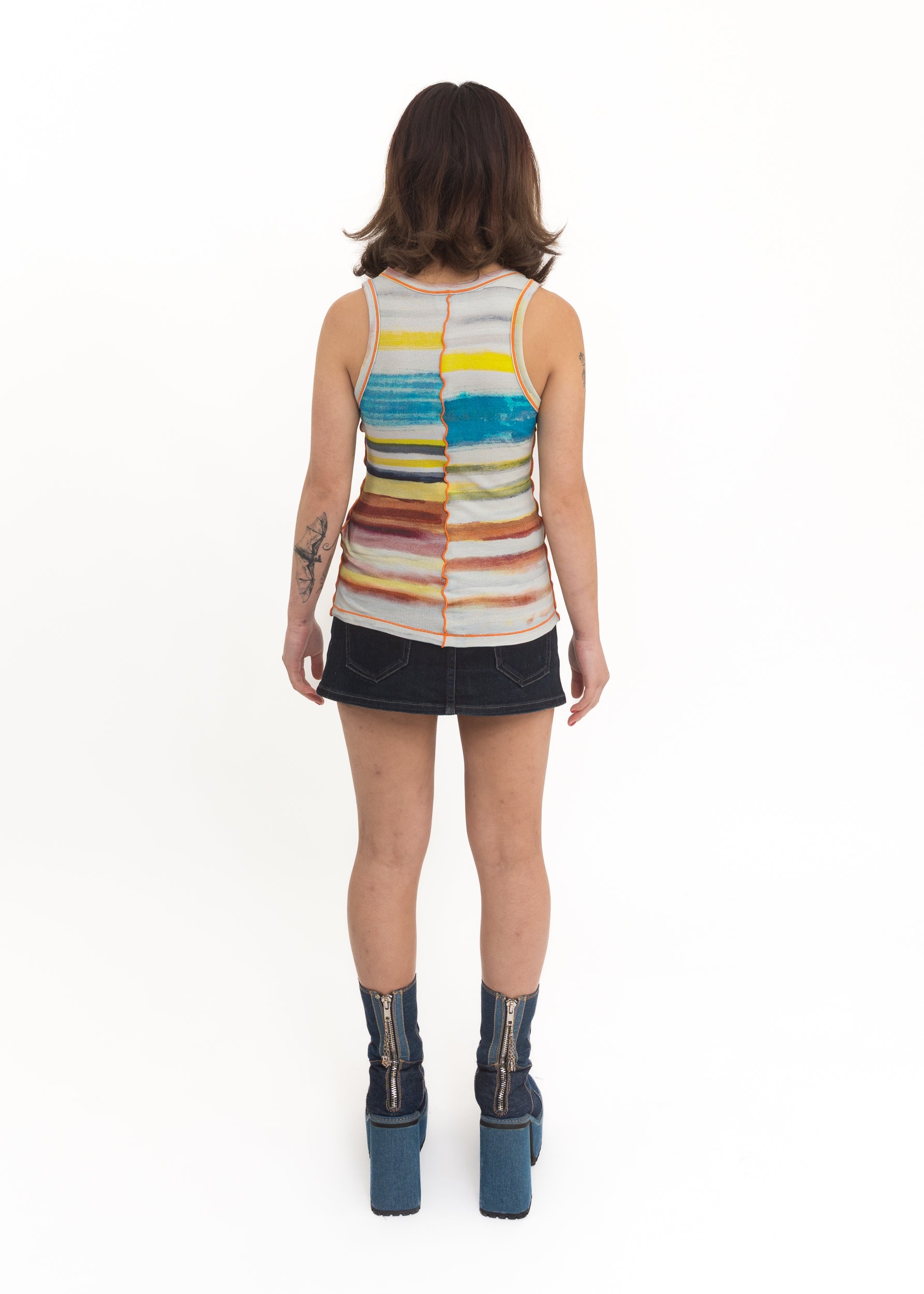 Diesel gradient patterned tank top with contrast serger stitching and metal logo detail