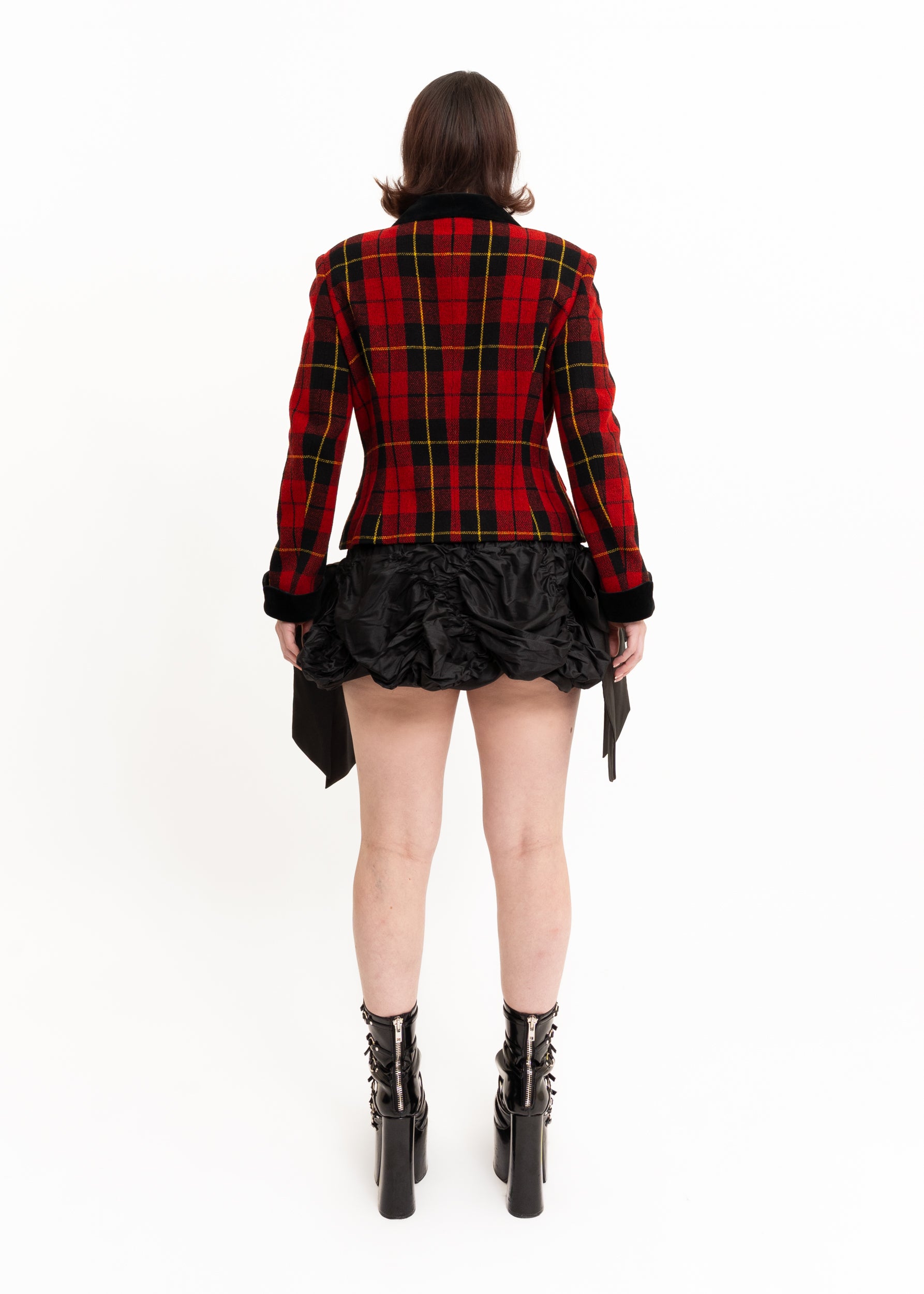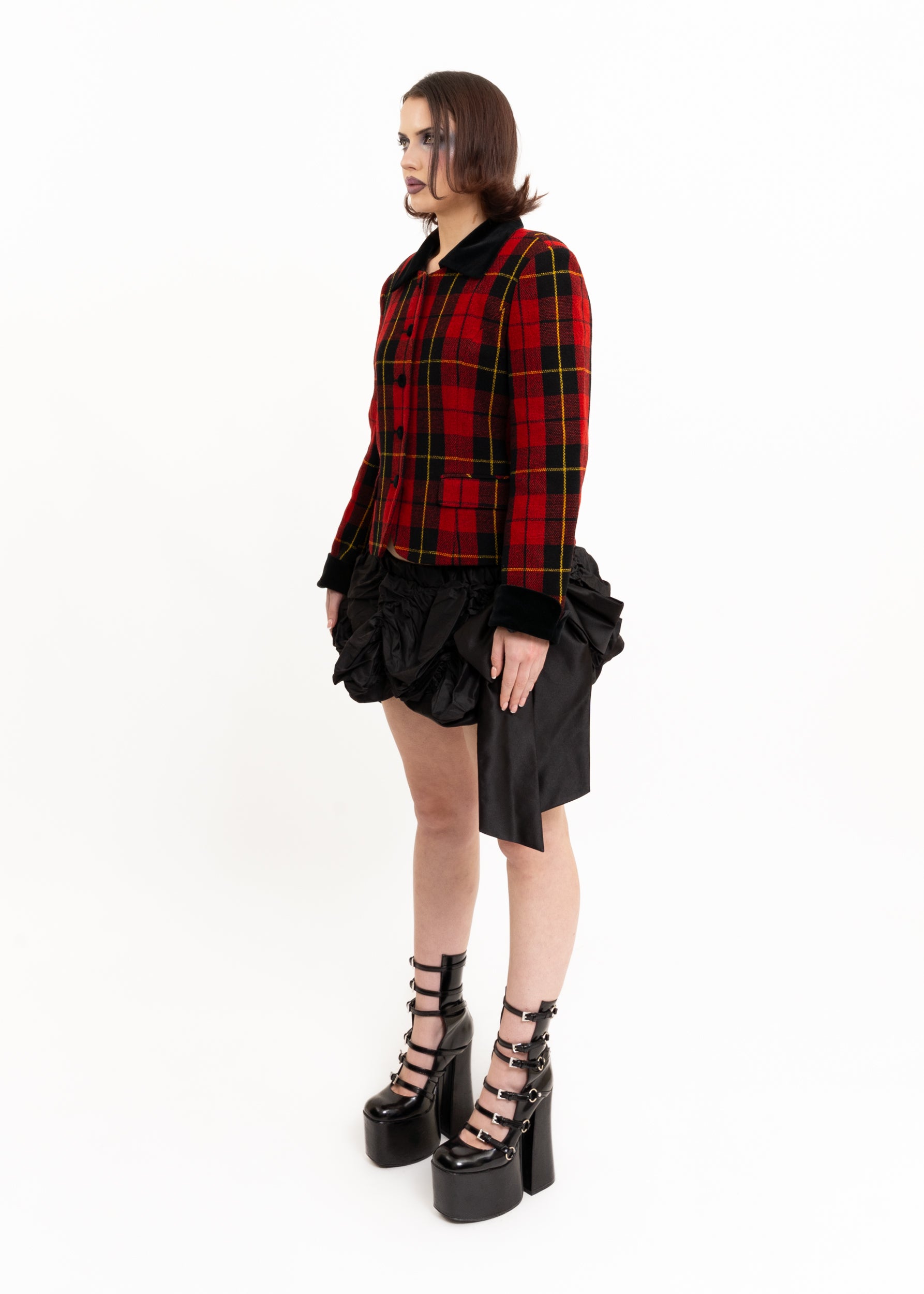 Japanese vintage wool-blend tartan jacket, with removable velvet collar and cuffs