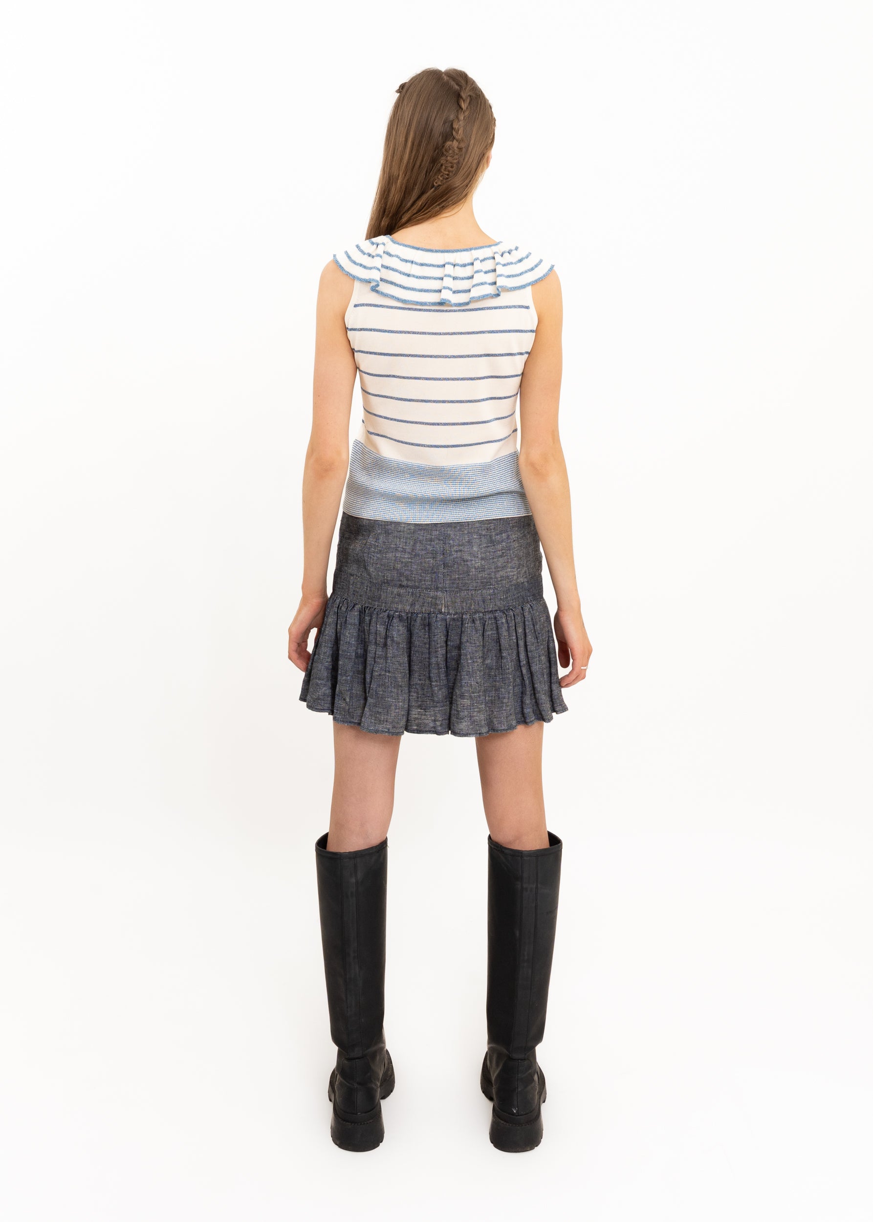 Styled with the Mila Schön ruffle neck knit top