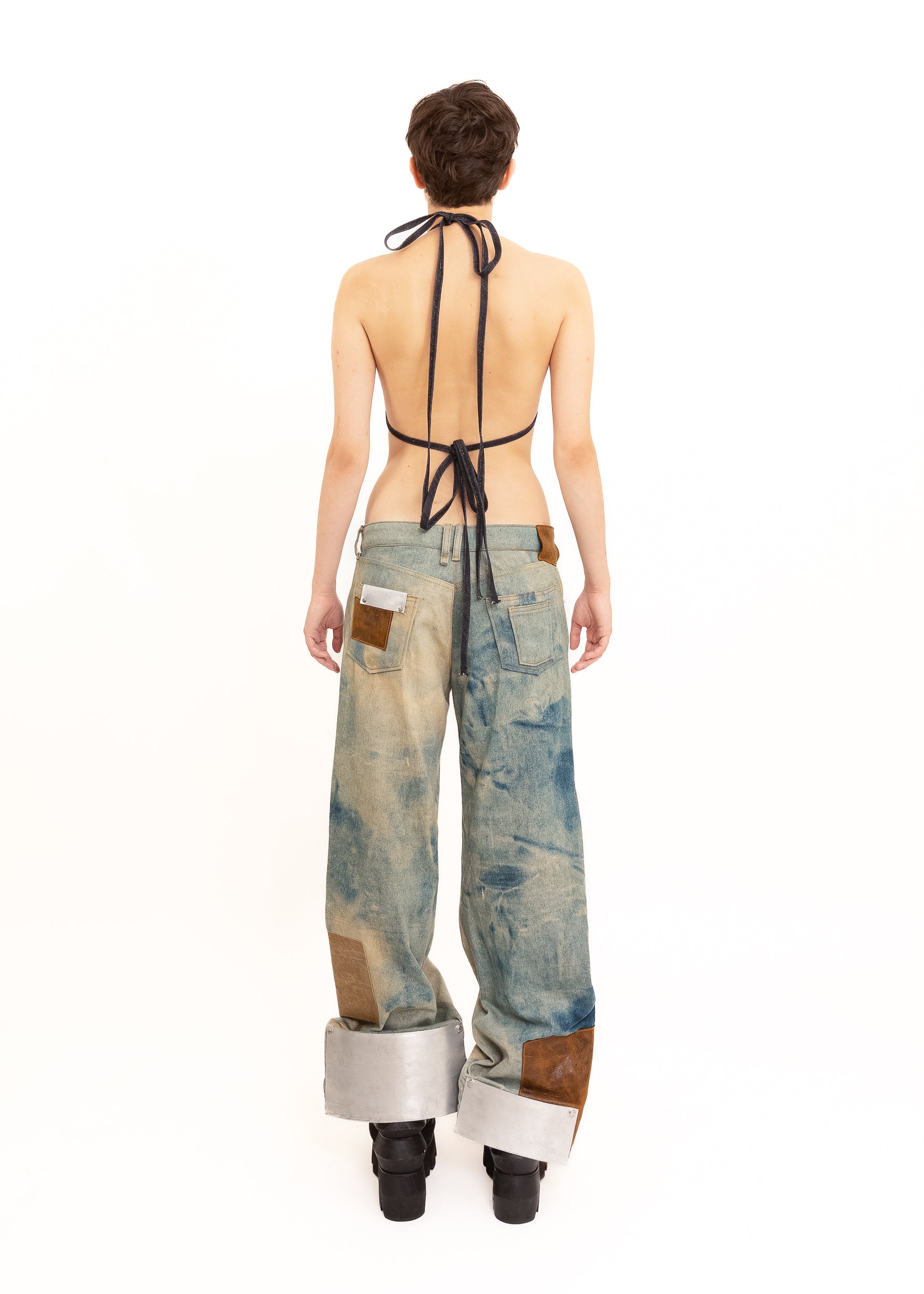 Styled with the patchwork steel plated jeans