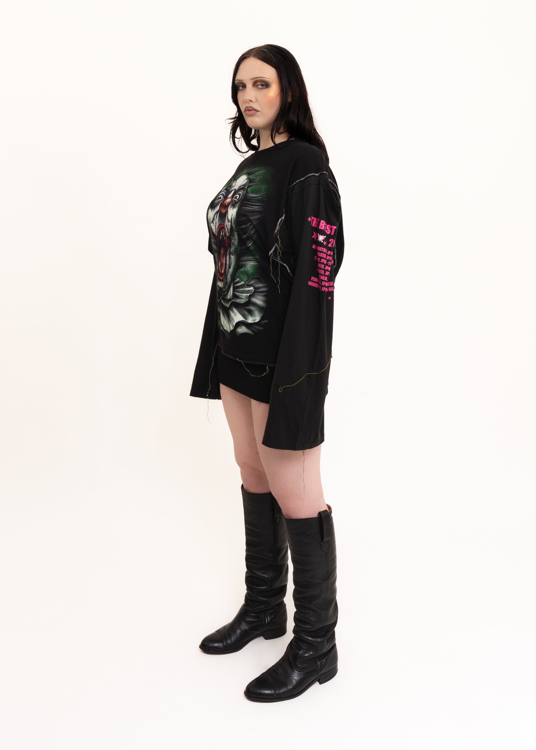 One of a kind "remake"/ upcycled clown graphic long sleeve t-shirt, made by Dog Harajuku